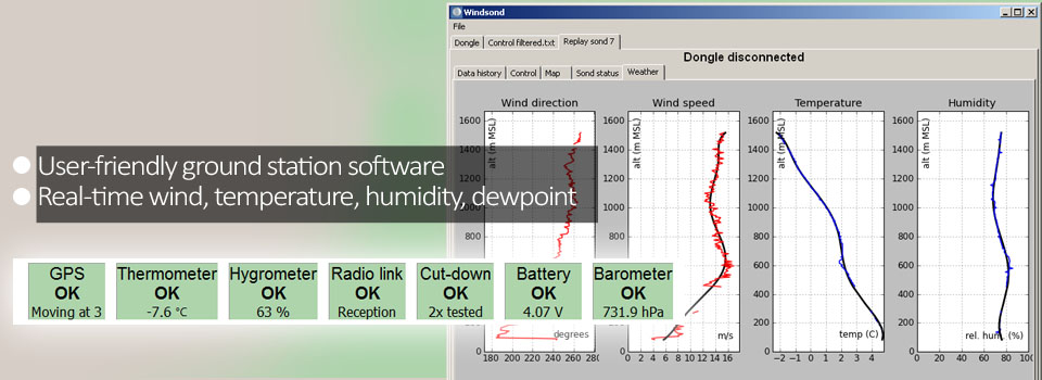 Windsond is a weather balloon system for an immediate view of local conditions at different altitudes. The focus on portability and low operating costs makes it perfect for frequent use in the field.